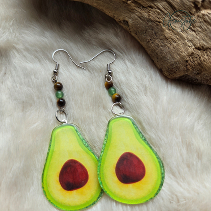 Who doesn't love avocados?! These fun dangles are adorned with tiger eye and green aventurine for action and endurance so you can smile through your day. This pair is about 3 inches long for a more dramatic style.